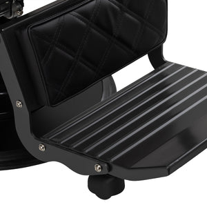 The solid base ensures stability and high comfort of use. The seat filling made of deformation-resistant foam and upholstery made of pleasant-to-touch synthetic leather with a matte finish ensure durability and comfortable use for a long time. These materials are moisture-resistant, durable, and easy to clean. The black shade of the upholstery gives the armchair a unique character, and its elegant style blends perfectly with barbershop decor.