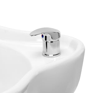 The depth of the ceramic washbasin bowl in shades of white allows for comfortable and effective performance of a wide range of hairdressing services, preventing excessive splashing of water and products used during the treatment. The material used makes the washbasin durable, resistant to discoloration and scratches, and very easy to keep clean. A properly profiled collar provides comfort during hair washing. The use of a special support in the bowl guarantees proper support for the head, so that its weight does not rest on the neck. The innovative solution prevents tension and discomfort in the neck area and ensures high comfort, even during long treatments. Additionally, thanks to the comfortable black plastic overlay, the customer will not feel the unpleasantness of the cold ceramic surface.