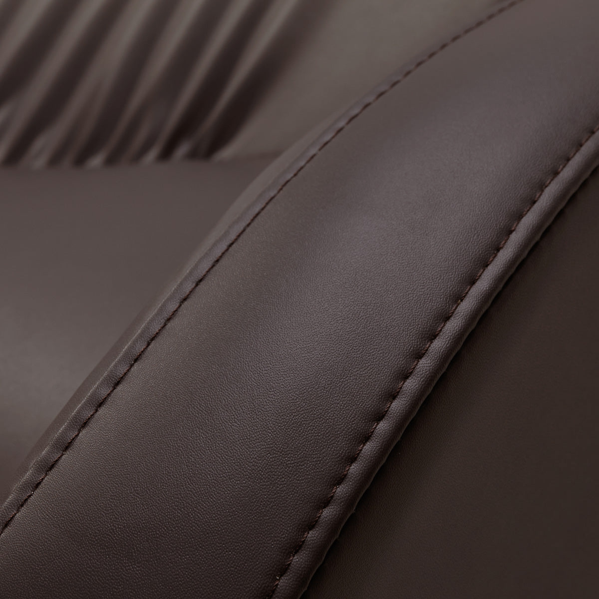 The Gabbiano TRYCHO hairdressing wash unit was designed to perform time-consuming care or coloring treatments, ensuring a comfortable position for the client during longer procedures. A properly profiled chair filled with durable foam ensures high comfort of use, while upholstered armrests allow for the correct positioning of the customer's shoulders. The backrest is placed at an optimal angle and provides excellent support for the spine. The synthetic leather cover in shades of brown guarantees long-term durability and ease of cleaning. The original, elegant appearance of the hairdressing wash unit gives the interior a unique expression. The base add stability and subtly emphasize the stylish character of the wash unit. The set includes complete fittings in chrome-tone, including a faucet, a shower head and dedicated hoses to provide a complete set of tools for work.