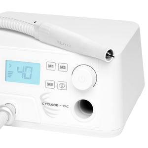 The Saeyang Marathon Cyclone-Vac – a high-end podiatric nail drill machine with an absorber – is a specialized device that allows you to maintain high hygiene standards in the practice, effectively protecting the health of practitioners and clients. The professional nail drill machine is designed for pedicures, especially dry treatment procedures carried out in podiatry, but it will also work well during manicures. The efficient head with the absorber and intuitive operation significantly improve the work of the podiatrist, facilitating the performance of a wide range of treatments.