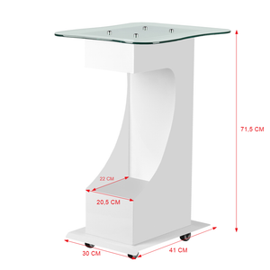 functional, metal and glass table with rubber wheels with a blocking function. Perfect as a table for a cosmetic device. it has a stable shelf for the device and thanks to the wheel, the table is mobile and easy to move. the piece of furniture provides convenience and comfort during work.