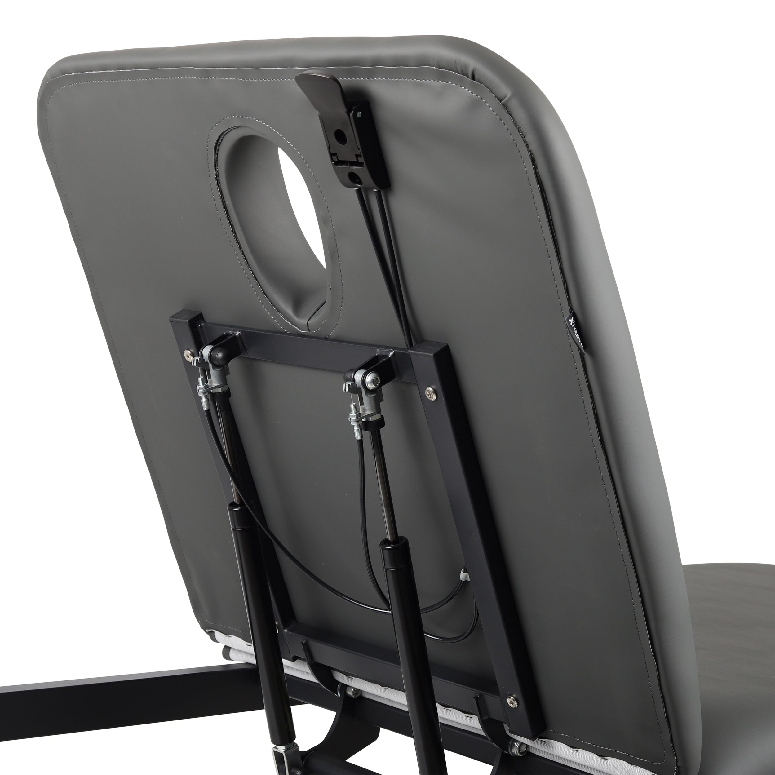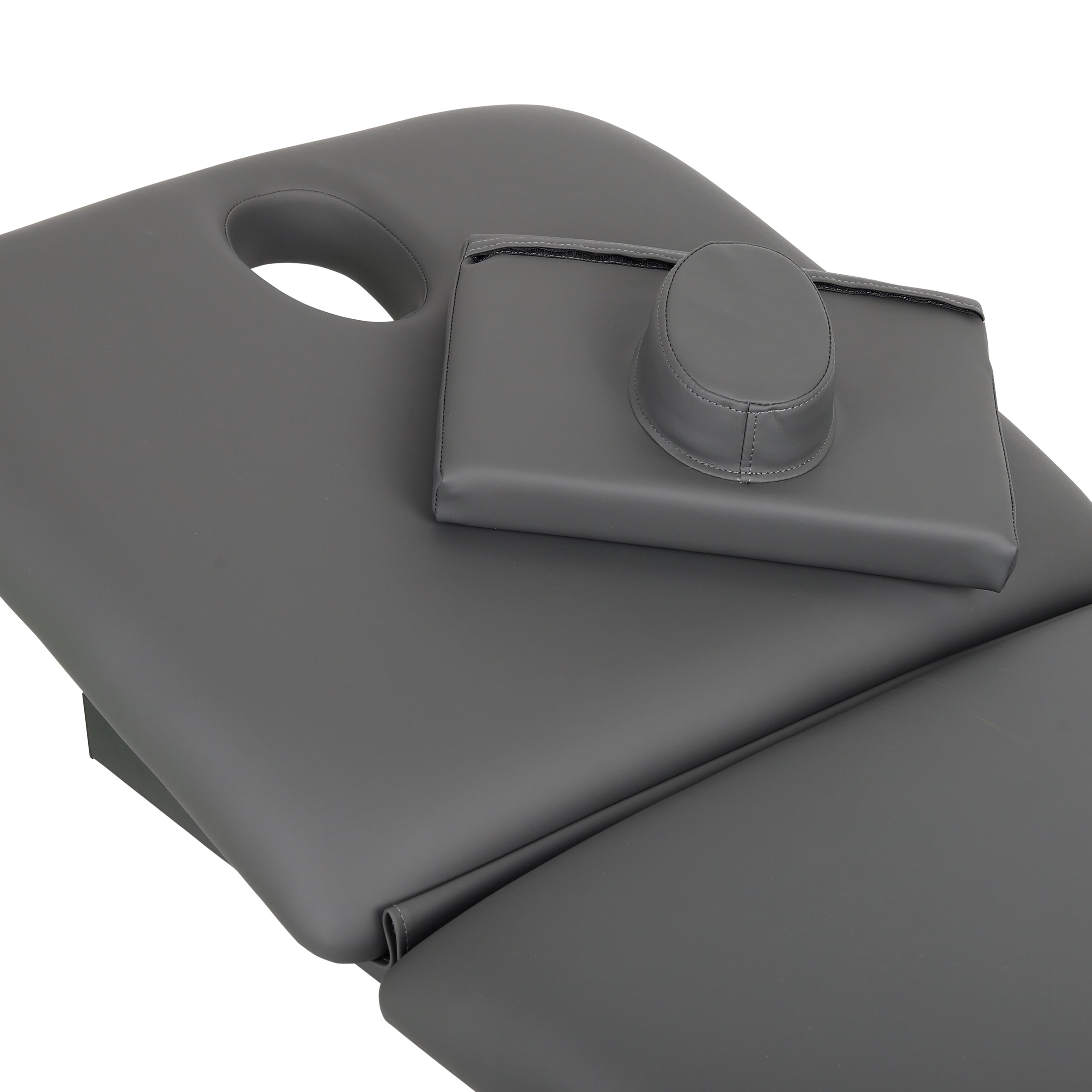 Adjustable headrest with face cutout and cushion: The adjustable headrest angle and gas spring mechanism ensure quiet and precise adjustment of the patient's position to the needs of the therapy. The face cutout in the table allows for free breathing in the "prone" position. A large cushion allows you to cover the cutout when needed, allowing the patient to be comfortably positioned in the "supine" or lateral position.