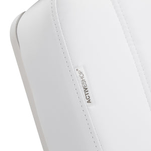 The robust construction of the chair ensures stability and durability during everyday use. The seat is filled with foam of appropriately selected hardness to guarantee comfort even during prolonged treatments. The upholstery made of pleasant-to-touch imitation leather in shades of white gives the whole chair a professional look, while being moisture-resistant and easy to clean. The durable base guarantees stability, while the carefully contoured hems emphasise the modern character of the furniture and enhance the ergonomics of the seat.