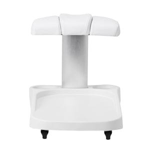 The footrest is made up of three parts, of which the middle one is extendable. Manual height adjustment allows it to be raised by a maximum of 20 cm. All elements of the footrest are upholstered with synthetic leather, which ensures resistance to moisture and ease of cleaning. As a result, the trolley can be adjusted to the individual needs of the user, which makes it an excellent solution for both cosmetic and podiatric treatments, ensuring comfort and precision of work in various positions.