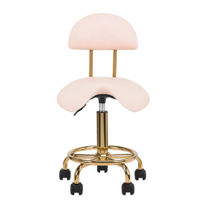 The five-star base in shades of gold is equipped with wheels that ensure significant mobility, making it easy to move the furniture around the salon. The upholstery of the stool is made of pleasant-to-touch imitation leather in shades of pink. Thanks to the use of such material, the stool is durable, moisture-resistant and easy to clean.
