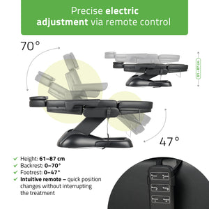 The Leo PRO 4 Electric Beauty Chair was designed to meet the needs of professionals seeking modern and proven solutions. Thanks to precise electric adjustment, the chair significantly enhances comfort and efficiency during treatments.