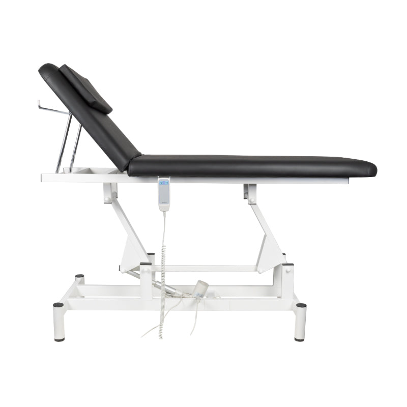the couch is especially intended for physiotherapy treatments and beauty salons. equipped with 1 motor, thanks to which the height is electrically regulated, the backrest inclination is adjusted manually. the headrest is a pillow that covers the face opening. it has an exceptionally stable structure and a comfortable worktop.