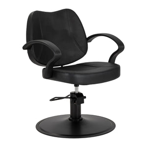 The durable body and synthetic leather in shades of black ensure moisture resistance, solidity and durability. The round base in shades of black guarantees stability and durability. The streamlined upper backrest adds a visual lightness, emphasizing the chair's modern character, while the meticulous details demonstrate the high quality of craftsmanship. The minimalist black color combined with aesthetic stitching makes the chair blend seamlessly with various salon interior styles, adding an elegant and modern touch