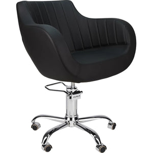 THOMAS is one of our bestsellers, loved for its bold shape, generous seat, and wide armrests. Its ergonomic construction delivers outstanding comfort for both clients and stylists. This is a chair that combines modern form with long-term durability. Available also with elegant vertical stitching that gives it a lighter, more refined look Black upholstery