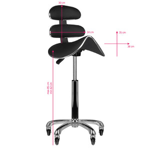 comfortable, stable cosmetic / hairdressing stool with a contoured seat and ergonomic backrest. mounted on a five-star base with sensational rubber and ball-bearing roll speed wheels that guarantee ease of movement. made of eco-leather in black color.