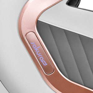 The comfortable interior of the chair is covered with pleasant-to-the-touch imitation leather in grey tones. The use of such material makes it highly resistant to moisture and easy to clean. The white and gray materials used on the outer parts of the chair and the rose gold decorative element give the product a characteristic, elegant look that distinguishes it from others. The carefully made hems give it a stylish look, and the solid construction guarantees long use. A compact model with an aesthetic finish and classic color scheme will fit perfectly into any interior. The Sakura Classic 802A massage chair is the perfect way to relax at any time, especially after an exhausting day or a hard workout.