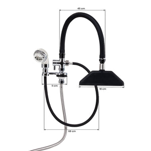 Waterfall faucet with mixer, designed for hairdressing washers, is an indispensable part of professional salon equipment. It facilitates convenient connection of water to the car wash and provides comfort to both the hairdresser and the client. Thanks to the included steel braided connection hoses, the faucet is characterized by high durability and resistance to abrasion.