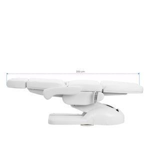 The seat height is adjustable from 65 cm to 84 cm, allowing the position to be comfortably adjusted to the height of both the client and the treatment practitioner. When fully extended, the chair reaches a length of over 2 metres, providing comfortable support for the body - even during treatments requiring a lying position. Thanks to such parameters, the equipment is suitable for a variety of treatments, both care and specialised, guaranteeing ergonomic work and a high standard of service.