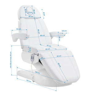 The Azzurro Lux electric cosmetic chair is equipped with 3 actuators controlled by a wired remote control, which enables smooth and precise adjustment of individual elements. It stands out for its stability and versatility of use, making it ideal for beauty, podiatry and aesthetic medicine surgeries. Intuitive operation and a wide range of adjustments make it easy to adapt the chair to the needs of both the client and the practitioner.
