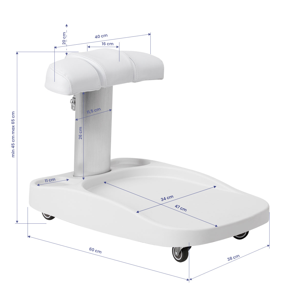 The Azzurro paddling pool trolley with adjustable footrest height is an irreplaceable element of equipment in beauty and podiatry clinics. It facilitates everyday work, ensuring mobility and order in the workplace. This is a perfect solution for those who value comfort and efficiency.