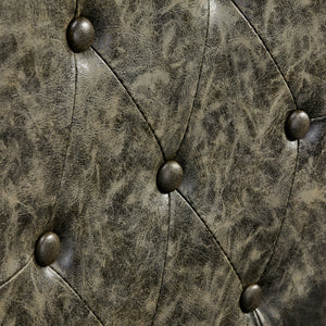 The solid construction of the base ensures stability and high comfort of use. The seat filling is made of durable, deformation-resistant foam and the upholstery is made of pleasant-to-touch synthetic leather with a worn, partially matte finish with an aged effect, ensuring the durability of the furniture and its comfortable use for a long time. They also make the equipment resistant to moisture, durable and easy to clean. The covering in shades of green with quilting and decorative buttons gives it a unique character. The chair with a characteristic design, referring to the vintage style, perfectly fits the atmosphere of barbershops, emphasizing their unique atmosphere.