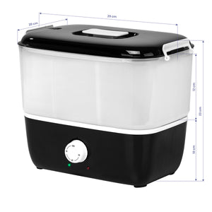 The model stands out for its fast heating, reaching its maximum temperature after a while, making it an ideal choice for professionals, speeding up work. A timer allows you to set the heating time for 10, 20 or 30 minutes, and when the time expires, the device automatically shuts off, ensuring safety. The heater is divided into three spaces, allowing efficient use of space and accommodating multiple towels. LED indicator lights and minimum and maximum fill level markings ensure convenience and safety of use.