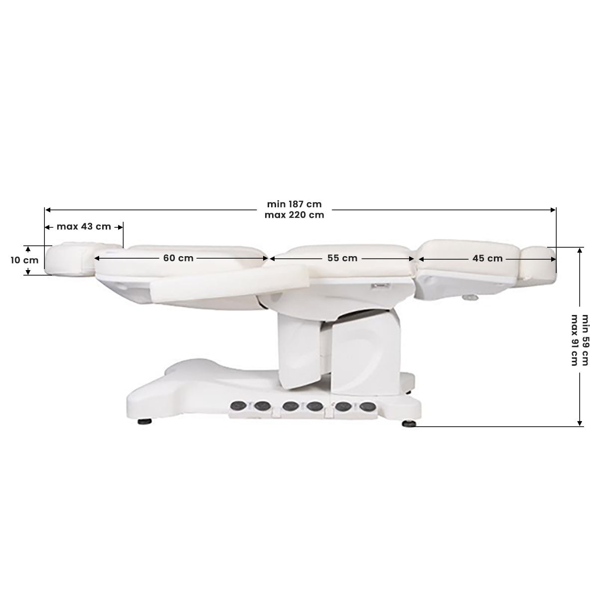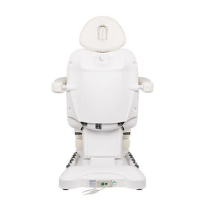 A unique electric cosmetic chair, ideally suited for beauty salons and SPA salons. Thanks to independent motors, it allows you to adjust the chair in 4 planes by means of a remote control and foot switches, giving the possibility of comfortable face and body treatments. By using the remote control, we can use the programmed settings and start the HOT function, i.e. heating. The armchair uses perforated upholstery, unheard of in other armchairs, and colored LED illumination of the base.