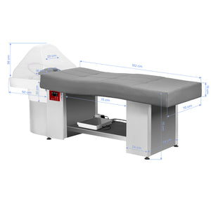 The Head Spa 017 SPA lounger is a combination of functionality and modern design. Equipped with a solid stainless steel frame, it guarantees stability and durability. The ergonomically profiled lounger is covered with soft synthetic leather in shades of grey, ensuring maximum comfort during treatments. In addition, the space under the lounger allows for convenient storage of cosmetics and accessories, making it an excellent choice for professional beauty & wellness salons.