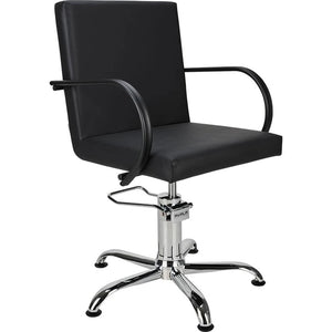 The PIK styling chair is the perfect choice for lovers of clean, modern design. Its simple, understated silhouette pairs beautifully with industrial, loft, and Scandinavian interiors. The matte black metal armrests coordinate effortlessly with raw finishes, creating a cohesive and stylish salon environment. Compact but professional, PIK is a favourite among stylists. Black upholstery