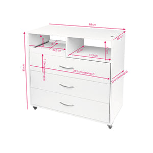 a professional podiatry unit, solidly constructed with drawers with a special drawer for the uv-c sterilizer and a shelf for a milling machine. The whole is complemented by a lamp holder, a magnifying glass tube and metal-rubber wheels guarantee mobility. the assistant was created to facilitate the work of the person performing the procedure.