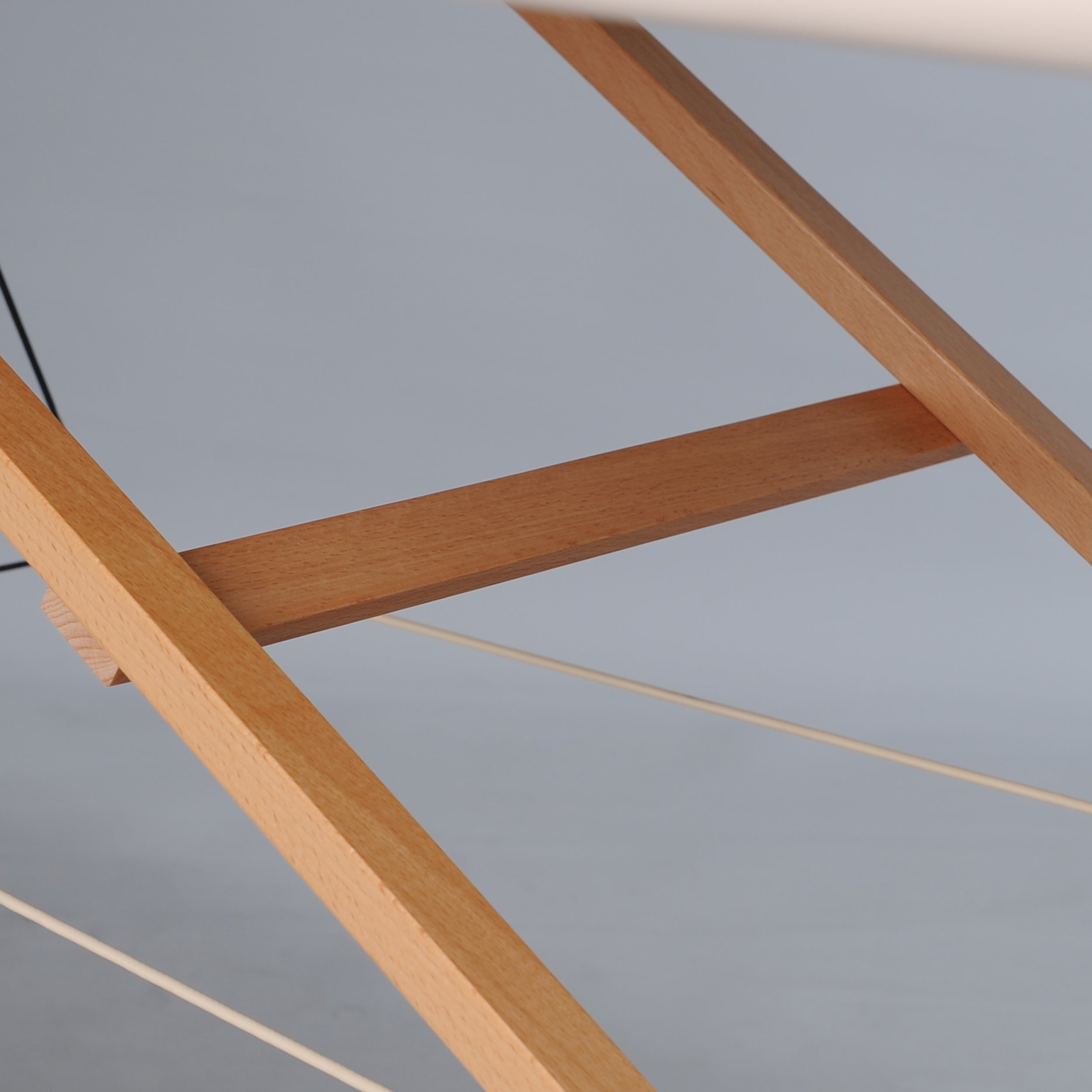 When designing, the designers focused on economical, but safe and durable solutions. Therefore, the table is made of solid beech wood, specially milled legs secured with double nuts, durable upholstery and foam, and high-strength cables.