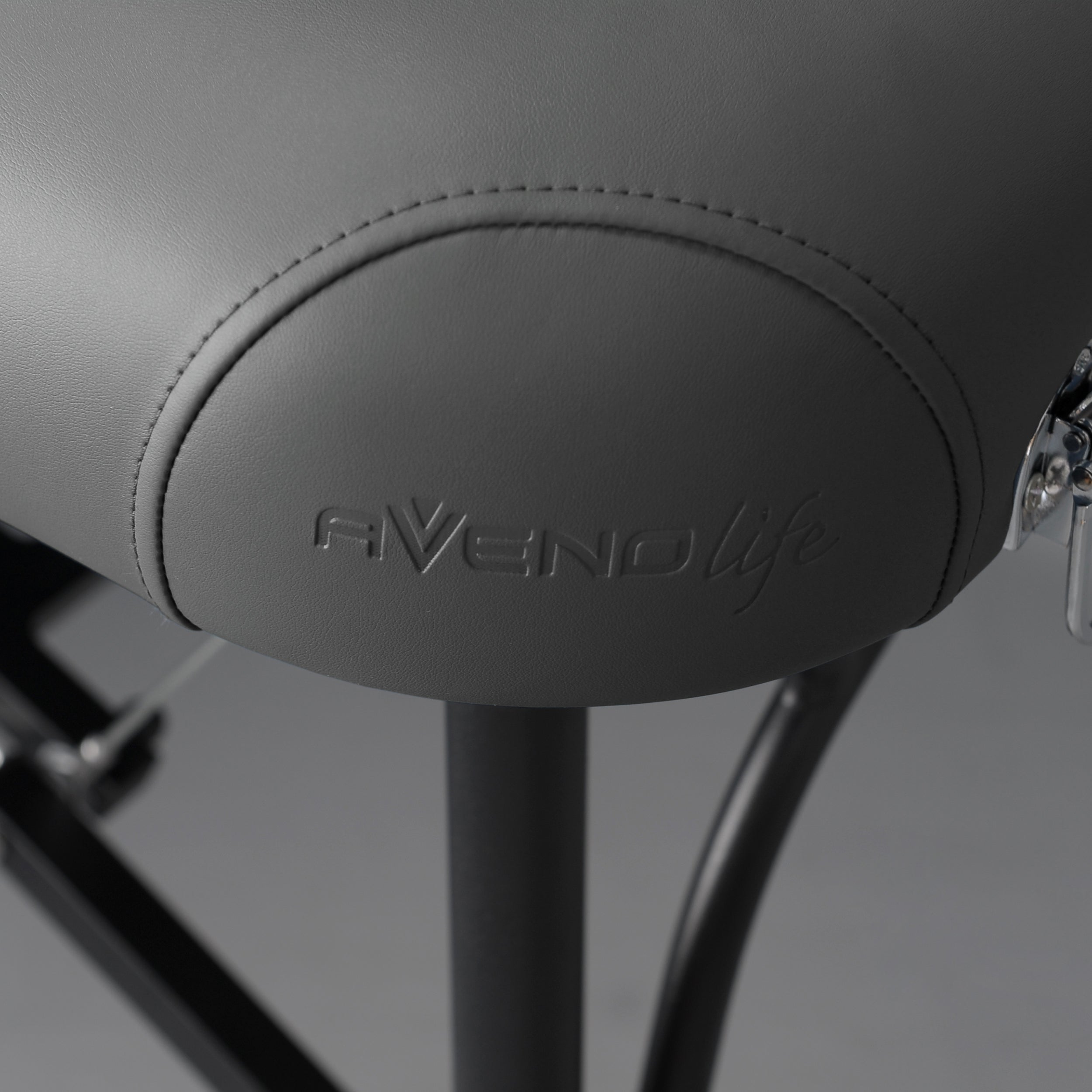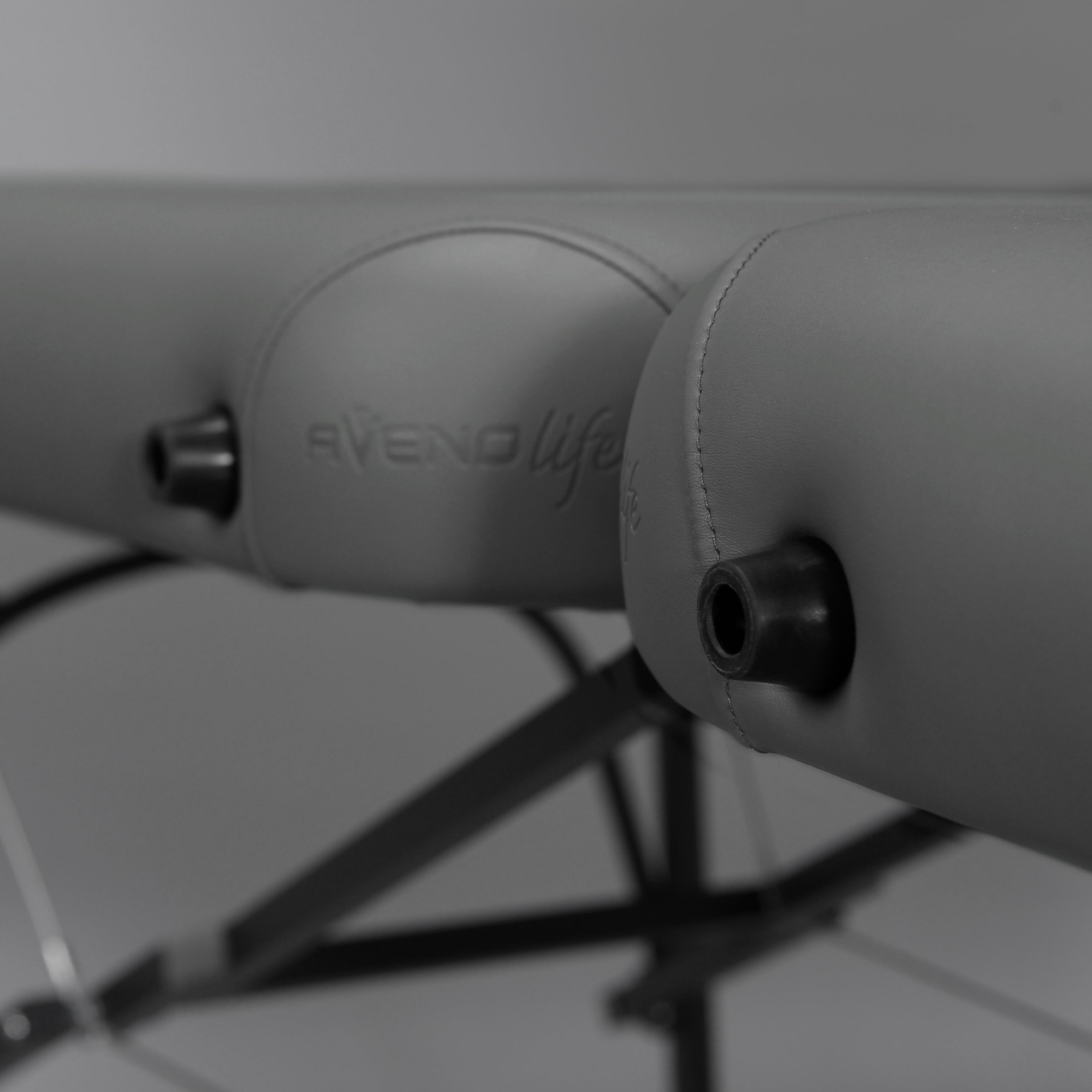 Rounded corners, facilitating the movement of the masseur around the table, with embossed Aveno Life logo.