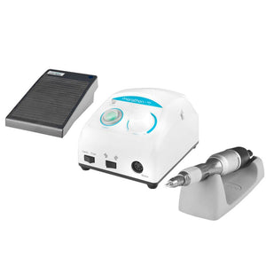 It works well in beauty and podiatry salons, and is suitable for prosthetic work. The handpiece (head) is designed in such a way that its upper part can be removed and sterilized in an autoclave. The control box of the nail drill machine is easy and intuitive to use. A smoothly adjustable knob allows you to choose the intensity of rotation in the range from 0 to 40 thousand.