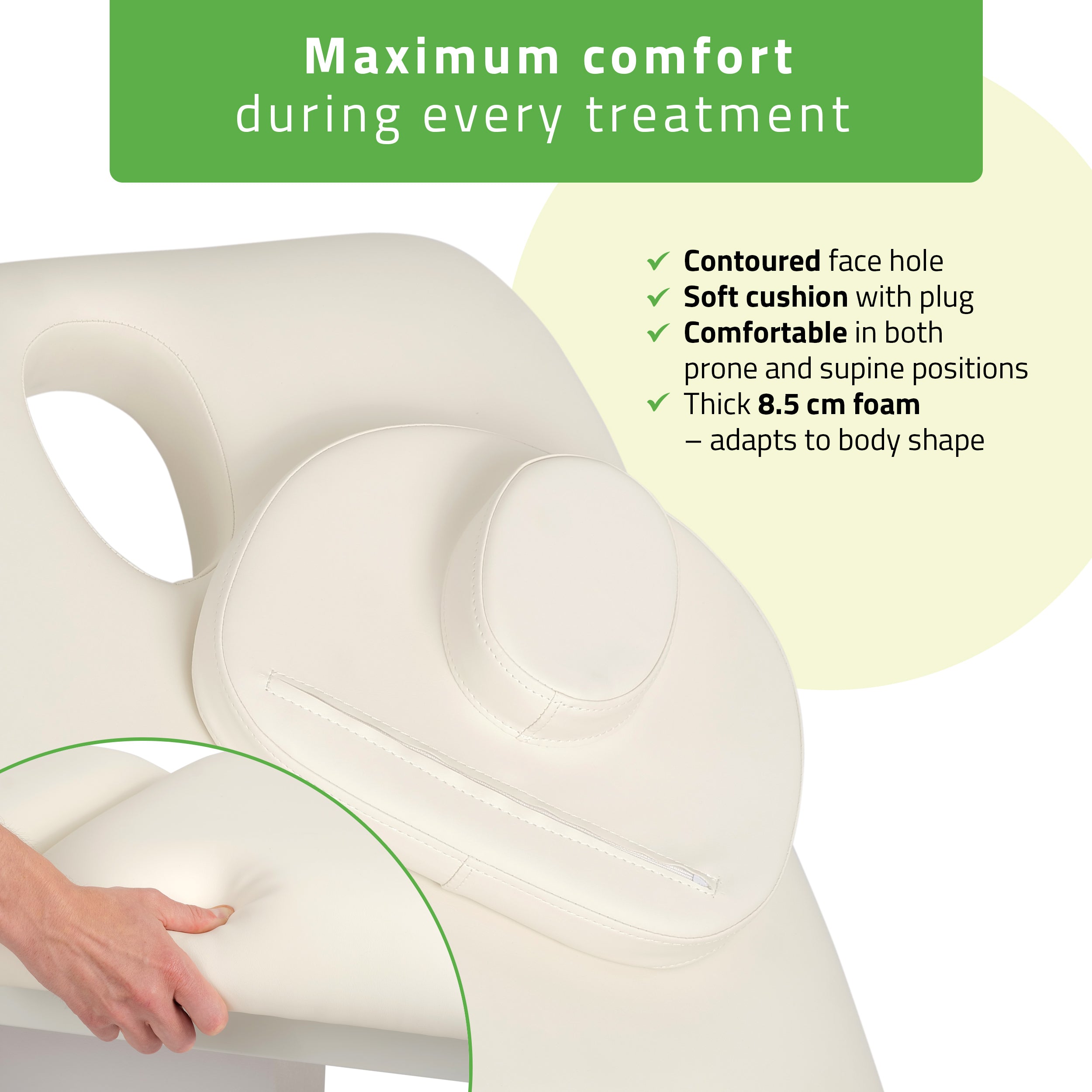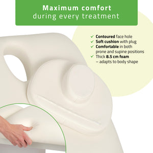Specially designed facial opening with a removable, soft cushion for comfortable prone positioning.