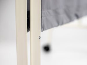 Standard, modular screen made of steel coated with durable white powder lacquer. Special wheels with brakes allow for easy movement and stabilization, even on slippery surfaces. Thanks to the modular option, it can be expanded with additional wings. Ideal as an essential piece of equipment for any physiotherapy or massage practice.