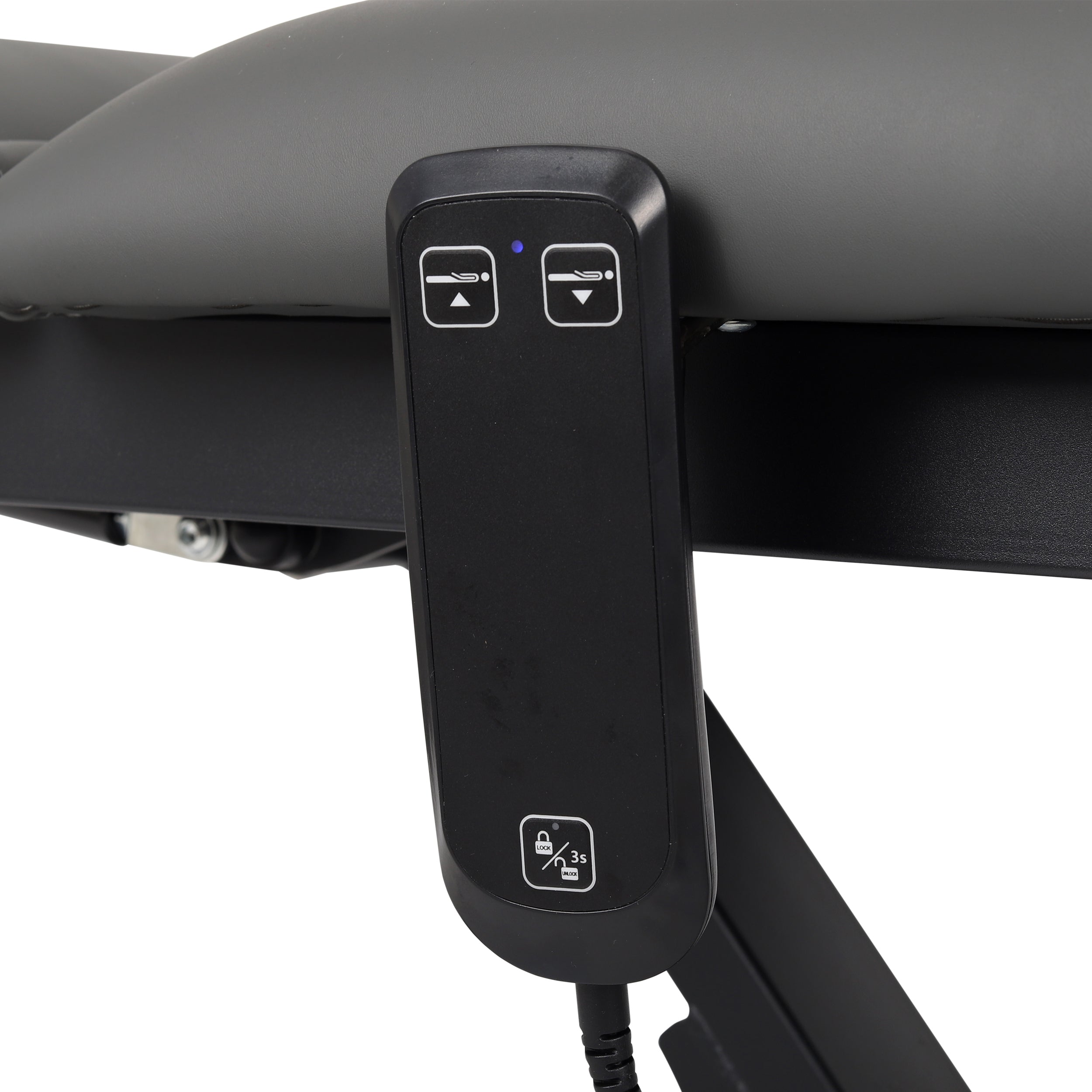 Handheld remote with lock function: Thanks to the remote, adjusting the table height is quick and easy. The additional height adjustment lock function on the remote allows you to quickly secure the table against accidental height changes.