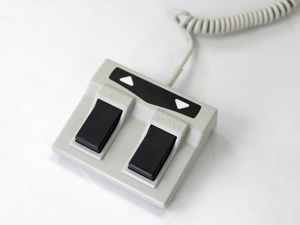 electric height adjustment of the table with a hand or foot remote