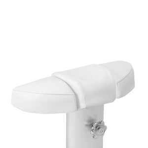 The adjustable trolley with footrest allows positioning to be adapted to the needs of both the client and the practitioner. Manual height adjustment up to 20 cm, moisture-resistant synthetic leather upholstery, and stable rubber wheels with locks ensure comfort, mobility, and good workstation organization.