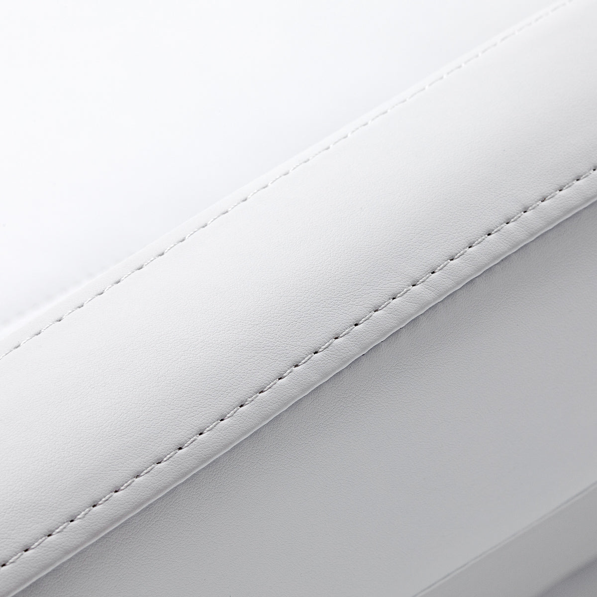 The solid construction of the chair ensures stability and durability during daily use. The seat filled with foam of properly selected hardness guarantees comfort even during long treatments. The upholstery made of high-quality, pleasant-to-touch synthetic leather in shades of white gives the chair a professional look, while being moisture-resistant and easy to maintain. The durable base ensures stability, and the precise finishes emphasize the modern character of the chair, enhancing the seat's ergonomics.