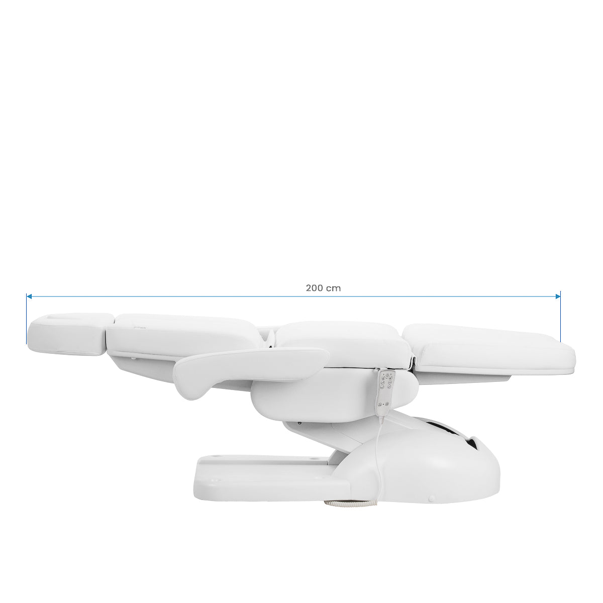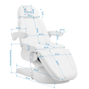 Azzurro Lux electric cosmetic chair with heating is a modern solution designed with demanding specialists in mind. The use of three actuators controlled via a wired system ensures precise and trouble-free adjustment of the individual parts of the chair. The chair stands out for its high stability and versatility, making it ideal for use in beauty, podiatry, and aesthetic medicine clinics. Intuitive operation and a wide range of adjustments allow for comfortable chair customization to meet the needs of both the client and the specialist performing the treatment.