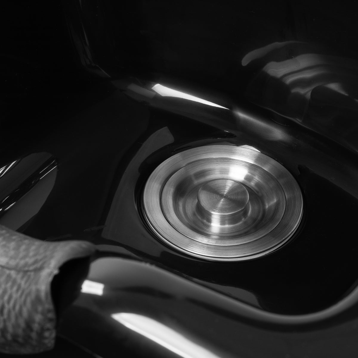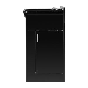 The deep black bowl is made of durable plastic, which makes it resistant to damage and easy to keep clean. Its well-thought-out design effectively reduces splashing of water and preparations during washing. The ergonomic shape and profiled collar with a silicone cover provide the client with a comfortable head position. A practical place for the shower handset helps to better organize the station, and the plug with a strainer makes it easier to control the water flow and maintain cleanliness and hygiene.