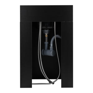 The side door provides easy access to the installation and allows storage of the most necessary products in a discreet way. The rear hole for the water connection allows for convenient and aesthetic connection of the station, while at the same time making it possible to hide the pipes and drain, which promotes maintaining order and a professional appearance of the station. The compact form of the furniture makes it ideal for both large salons and smaller spaces.