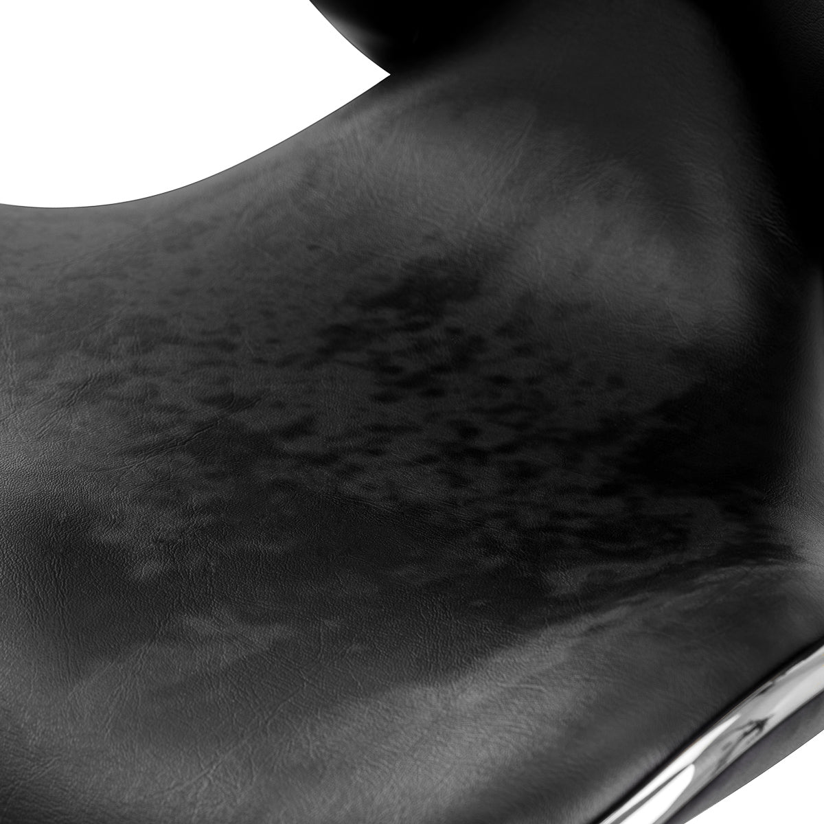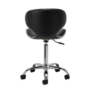The five-star base ensures stability, even during dynamic movements or frequent position changes. Equipped with durable wheels, it provides high mobility, allowing easy movement around the salon or office. The synthetic leather upholstery in shades of black is not only durable but also easy to clean. Aesthetic chrome elements add a luxurious touch and catch the eye. The unique combination of elegance and comfort makes this stool an indispensable tool for any professional.