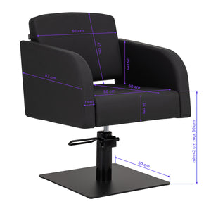 The Gabbiano Elda hairdressing chair combines minimalist design with functionality and everyday comfort. Streamlined lines give it a light and modern character, while the stable, square base in matte black further emphasises its style. The soft foam filling combined with soft-touch synthetic leather in shades of black ensures comfort even during long treatments. Carefully selected materials ensure durability, moisture resistance, and ease of cleaning. The chair fits perfectly into both modern and classic interiors, emphasising the professional character of the salon.