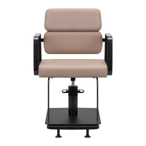 The full rotation mechanism of the chair makes the hairdresser's work more effective and comfortable. A solid, flat, square-shaped base guarantees stability during use. The matte-finished, smooth surface gives the element an elegant look and makes it easy to keep clean. A comfortable seat with foam filling ensures high comfort of use, even during many hours of treatments. Geometric, metal armrests allow for the correct positioning of the client's shoulders – this means that he does not bury his head in his shoulders or slouch – which makes it much easier to perform precise treatments, including haircuts. A stylish footrest dedicated to this model provides stable support for the user's feet.