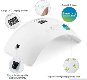 Compact new generation professional Smart nail dryer with smart painless builder/hard gel curing, smart double speed curing, smart time memory function, smart sensor, smart digital time display, smart over-temperature protection. Fashionable and durable 50000hrs lifetime, ideal for both home and salon use. This nail dryer can help you to solve almost all the curing problem!