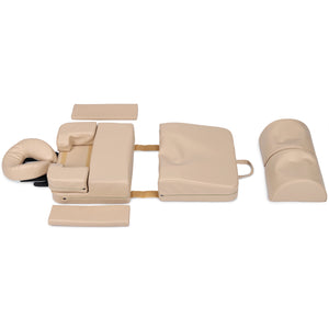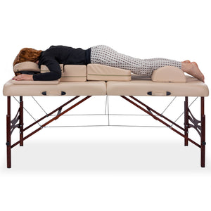 A set of massage bolsters designed for pregnancy massage, allowing for improved positioning of the woman during the massage. The bolsters provide complete comfort both when lying on the side and on the stomach, improving the effectiveness of the massage and facilitating its performance. The bolsters are made of foams with optimal elasticity and resistance to deformation.