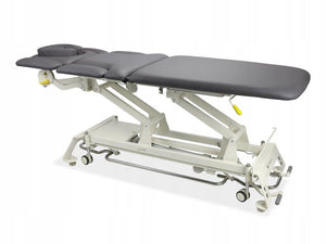 The EVERO X7 rehabilitation table is one of the most advanced stationary tables. The model is equipped with a 7-segment top with full adjustment, a control frame, a mobile system, and a headrest with an ERGO cushion. The specially contoured cushion perfectly adapts to the face, providing the patient with maximum comfort.