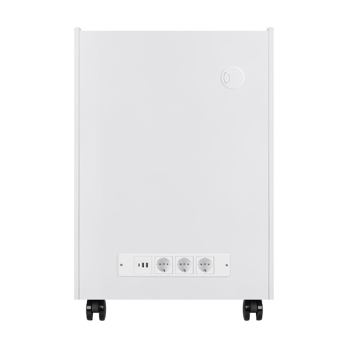 Practical castors facilitate the smooth movement of the cabinet. The simple, minimalist form in white gives the furniture a universal, professional look that fits well into modern interiors. The design, created with podiatry professionals in mind, provides a dedicated space for a podiatry drill and essential accessories, promoting comfortable and ergonomic work during procedures.