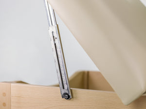 Double breaking of the tabletop allows the patient to be positioned according to the needs of the procedure. Covering with a special composition of foams ensures the patient's full comfort during the procedure, allowing them to fully relax. Natural beech wood and a massive tabletop with rounded corners give the couch an impressive and modern look. The couch is equipped with a practical shelf for cosmetics and accessories.
